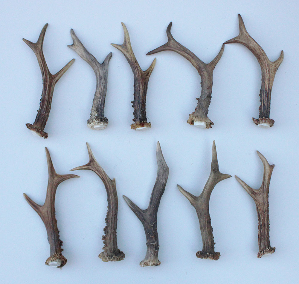 10 stangetjes REE GEWEI 17-19 cm, ter decoratie of verdere verwerking. De prijs is uiteraard voor de 10 gewei stangetjes op de foto samen.