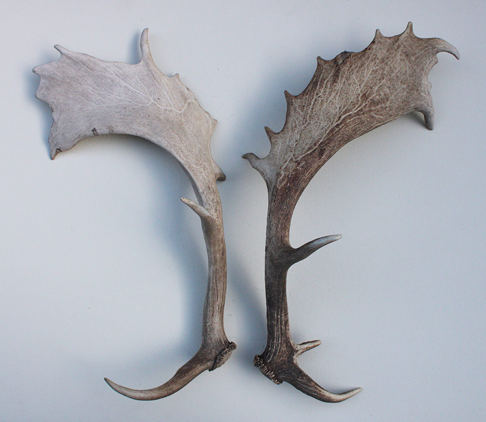 2 grote DAMHERT GEWEI STANGEN - afwerp - 70 cm