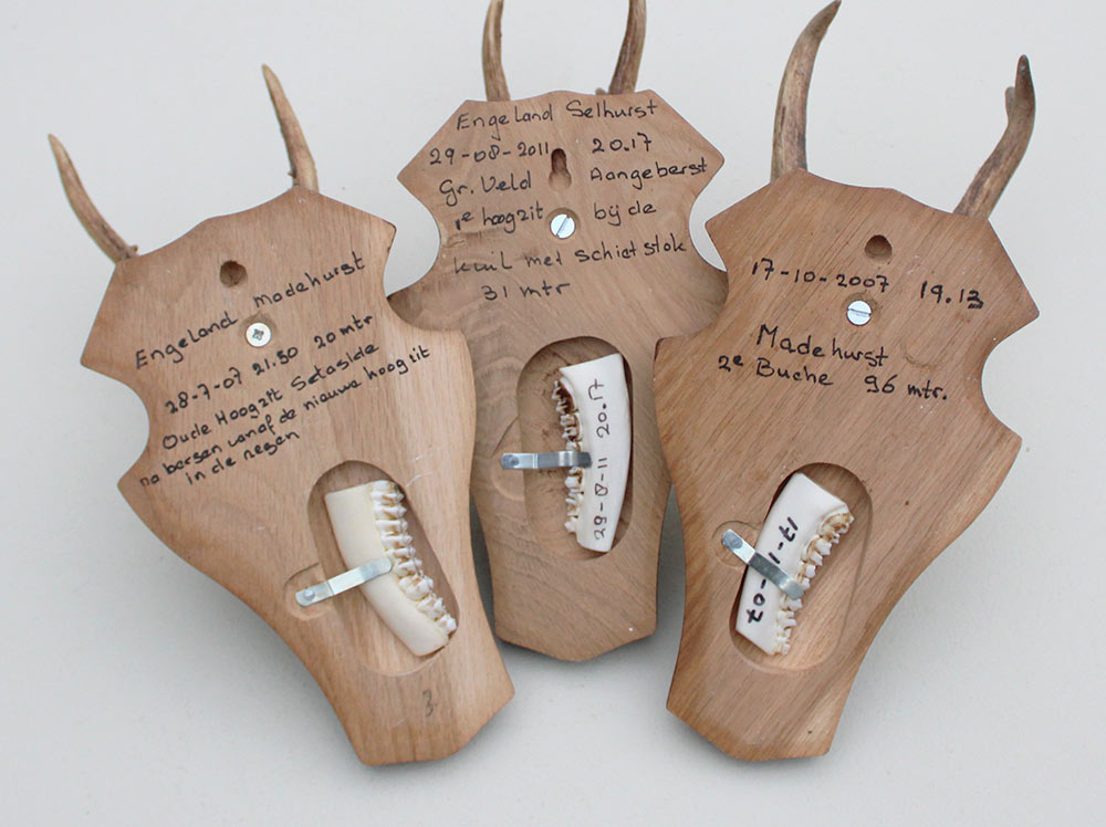 3 x Engels REE GEWEI op houten schild - met kaakdeeltjes