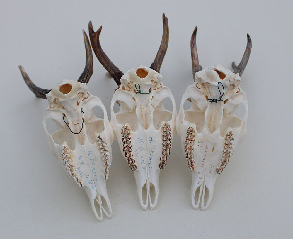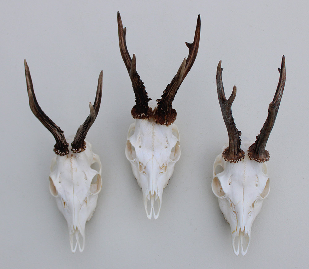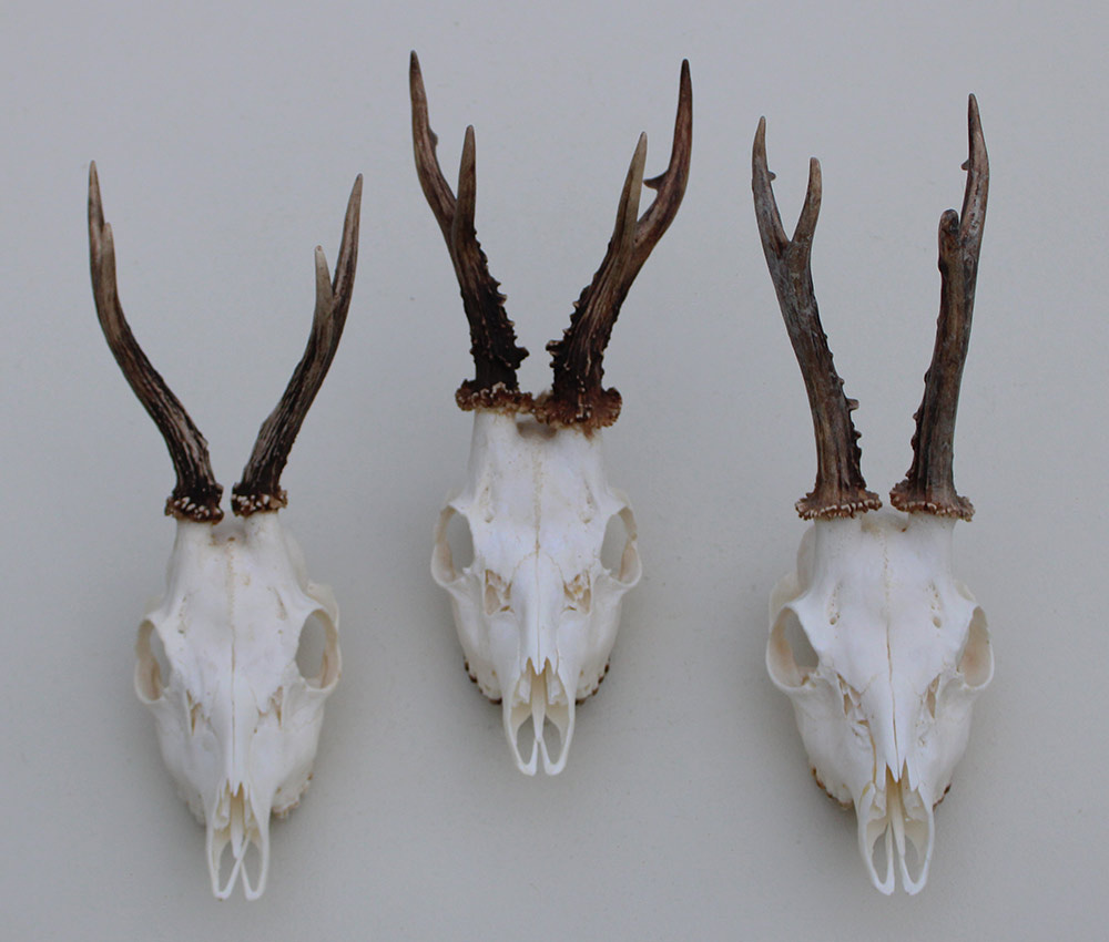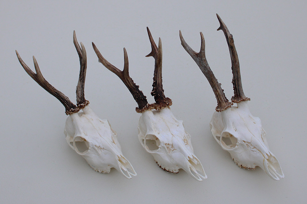3 x mooi gebleekte REE SCHEDEL. Decoratieve set - de stanglengte bedraagt 15-17 cm.