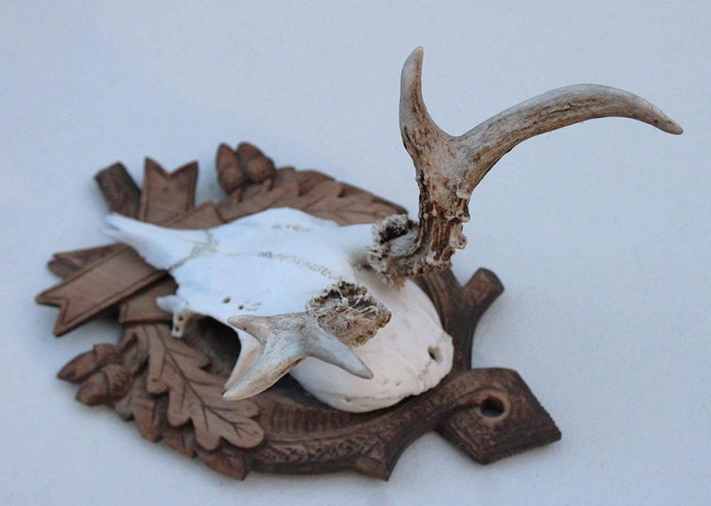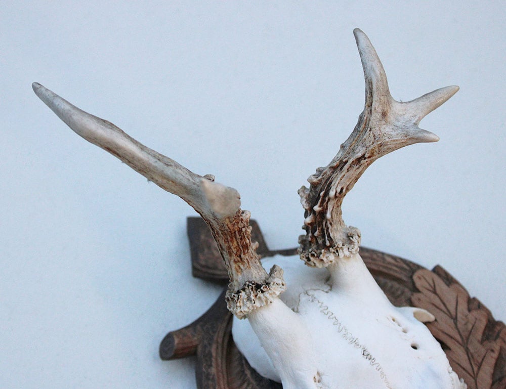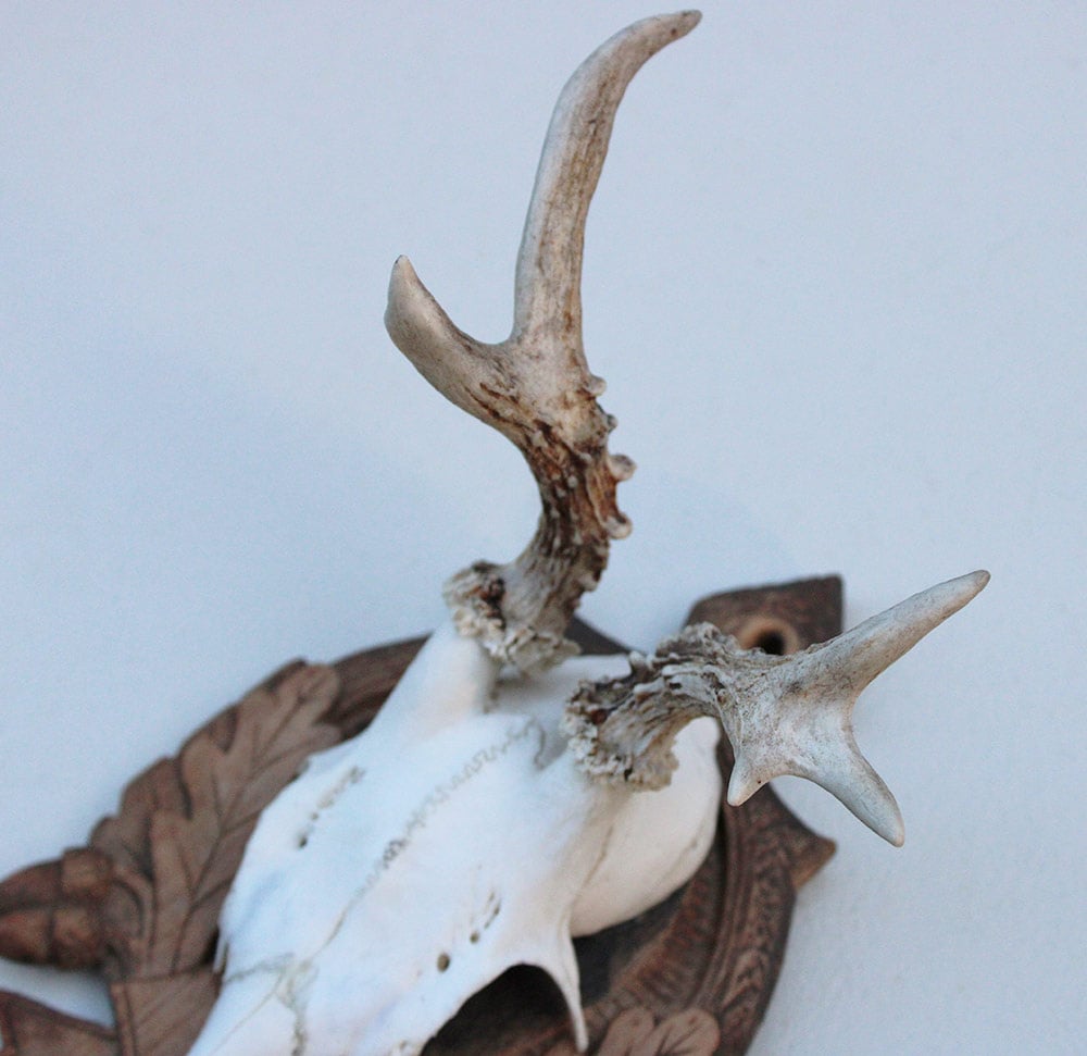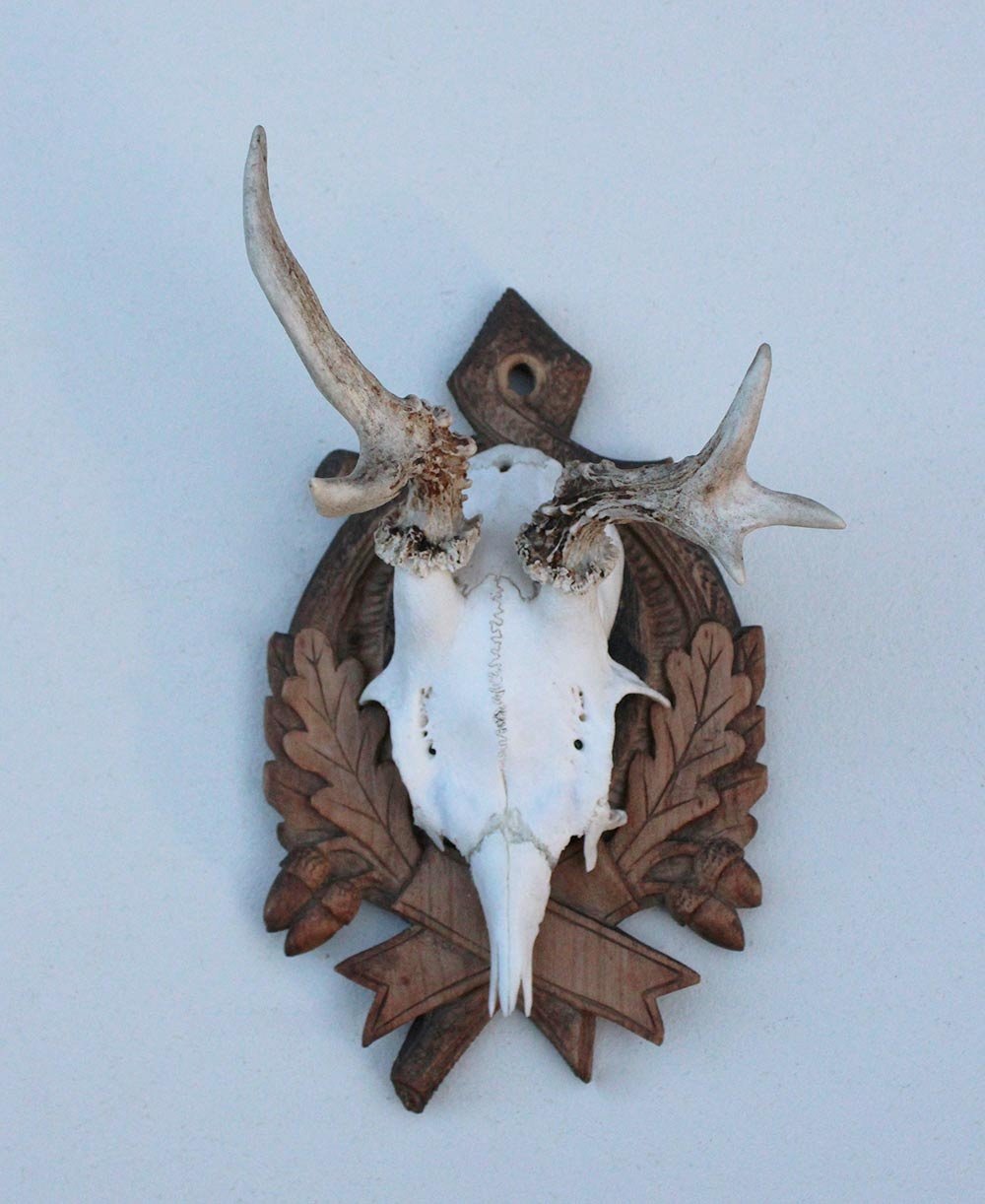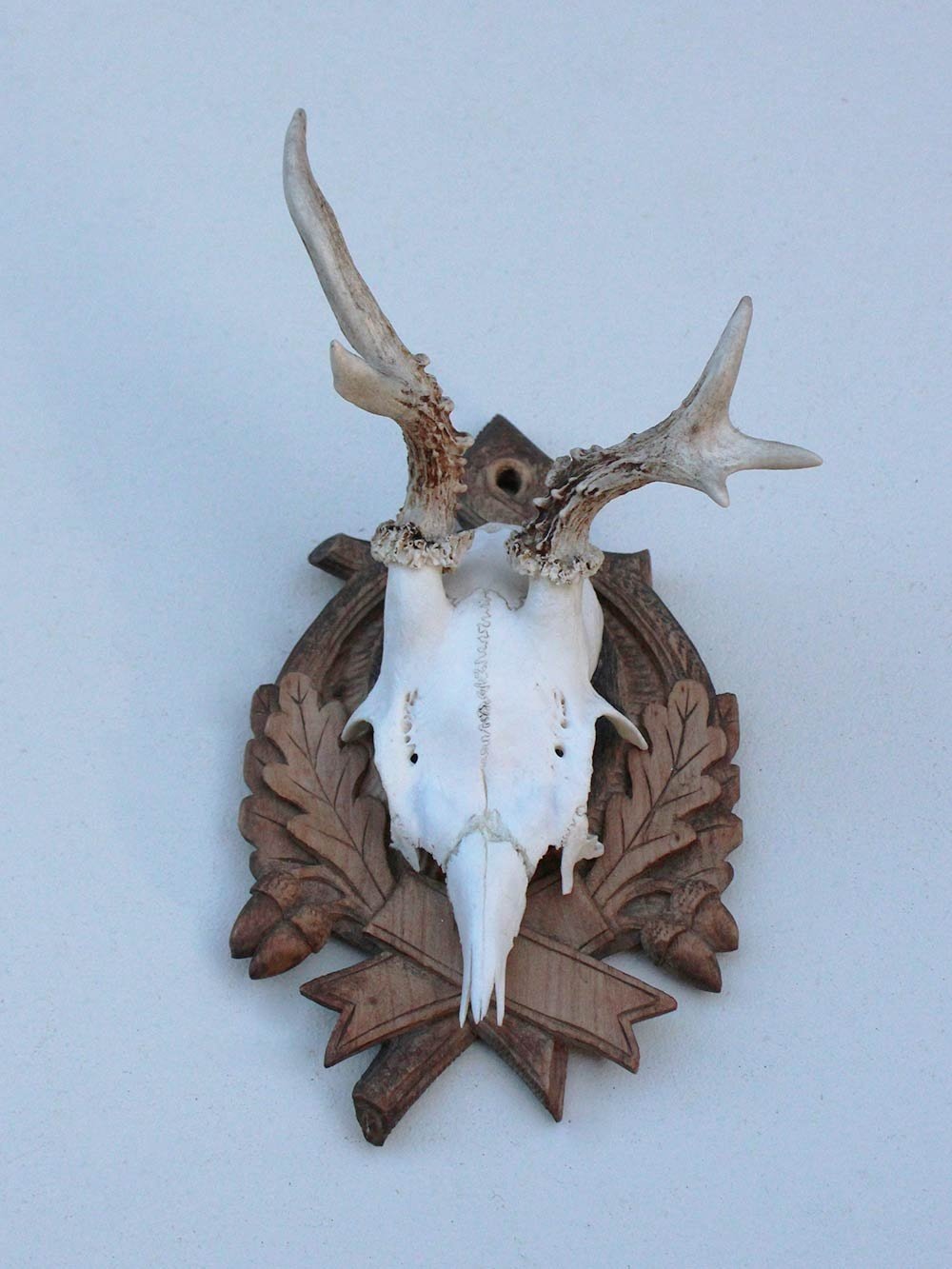 Abnorm REE GEWEI op bewerkt houten schild. Afmeting schild 21 x 13 cm.