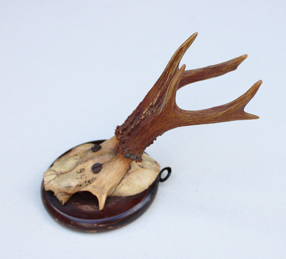 Antiek REE GEWEI op rond zwart houten schild - 1894. Diameter schild 10 cm. De stanglengte bedraagt 13 cm.