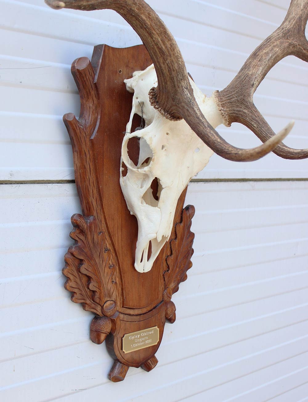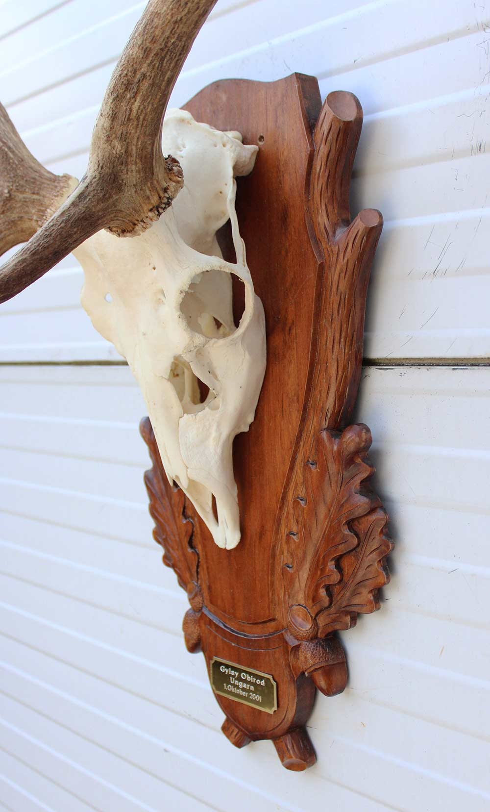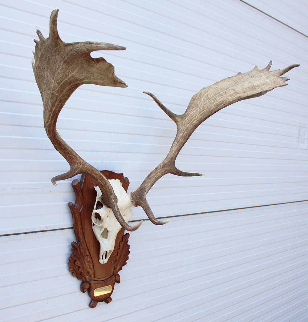 Groot Hongaars DAMHERT GEWEI op bewerkt houten schild