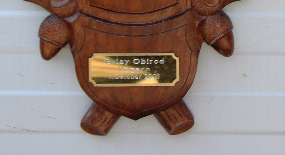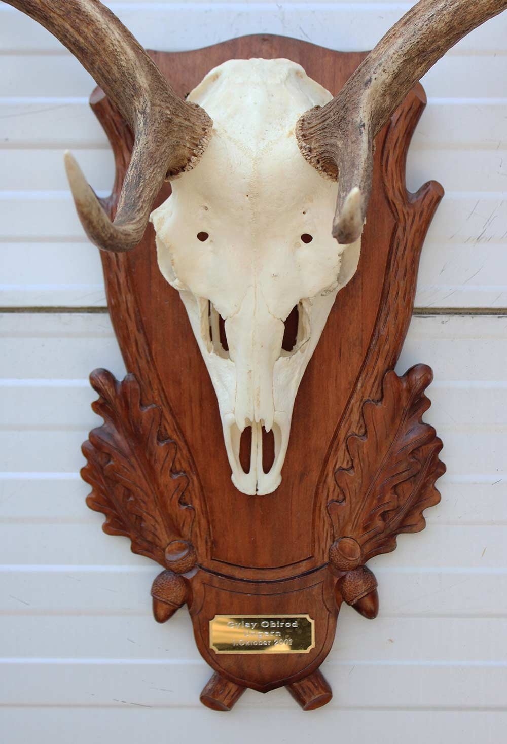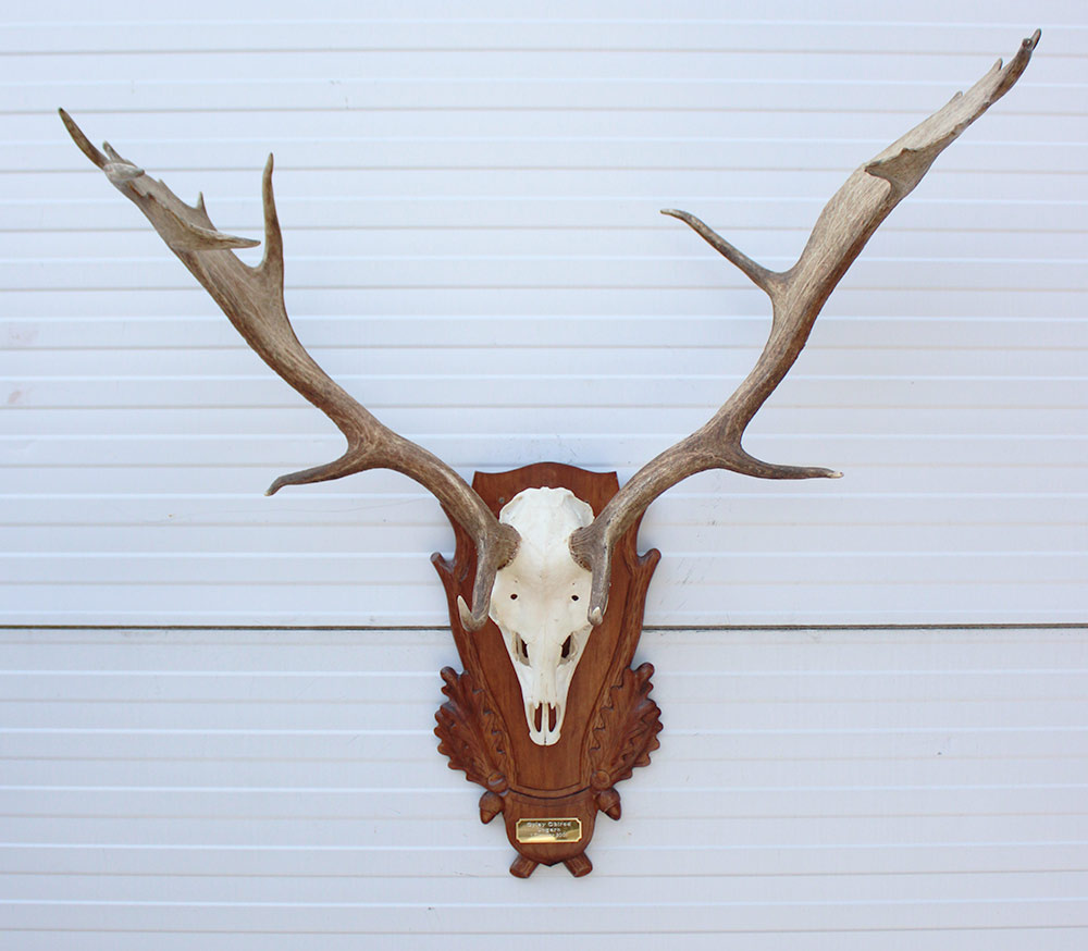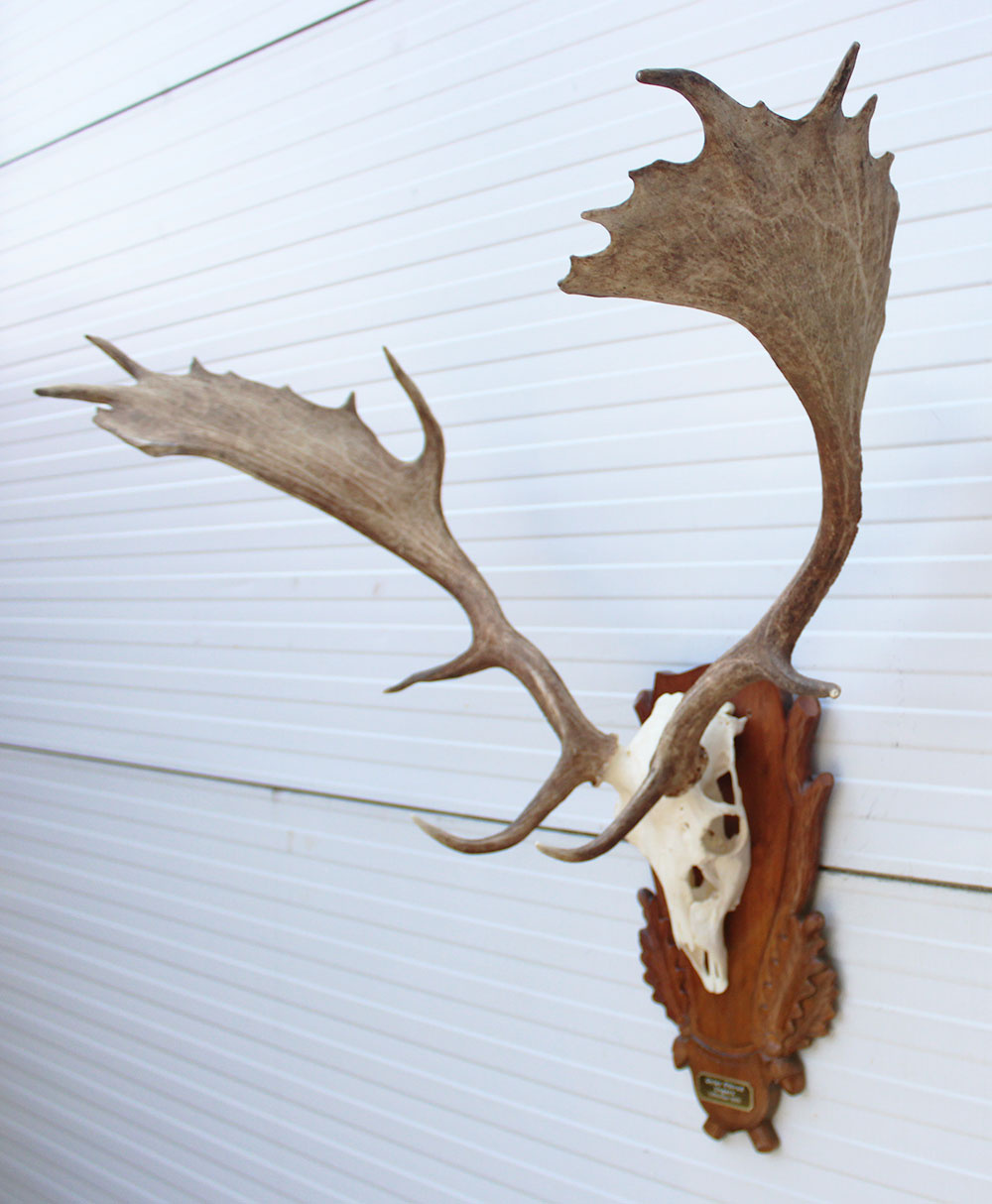 Groot Hongaars DAMHERT GEWEI op bewerkt houten schild