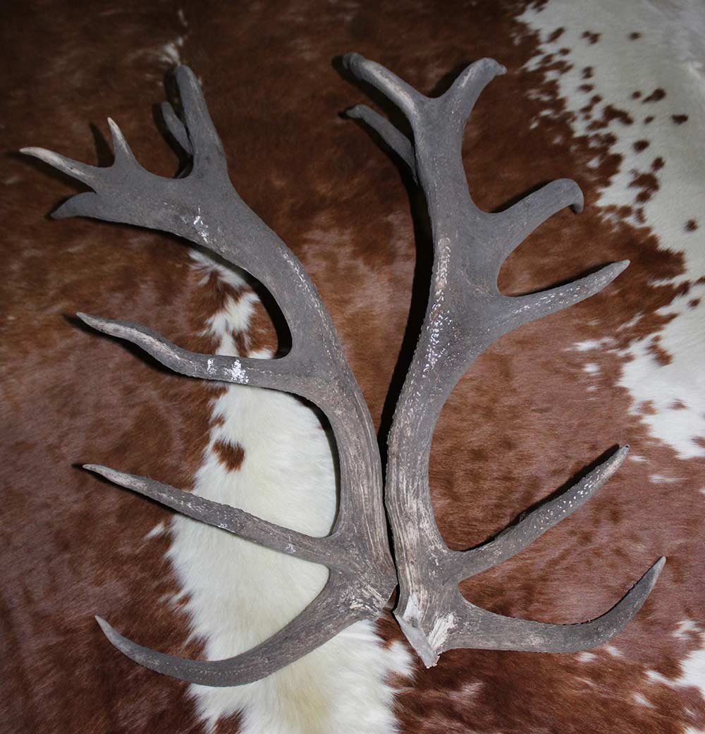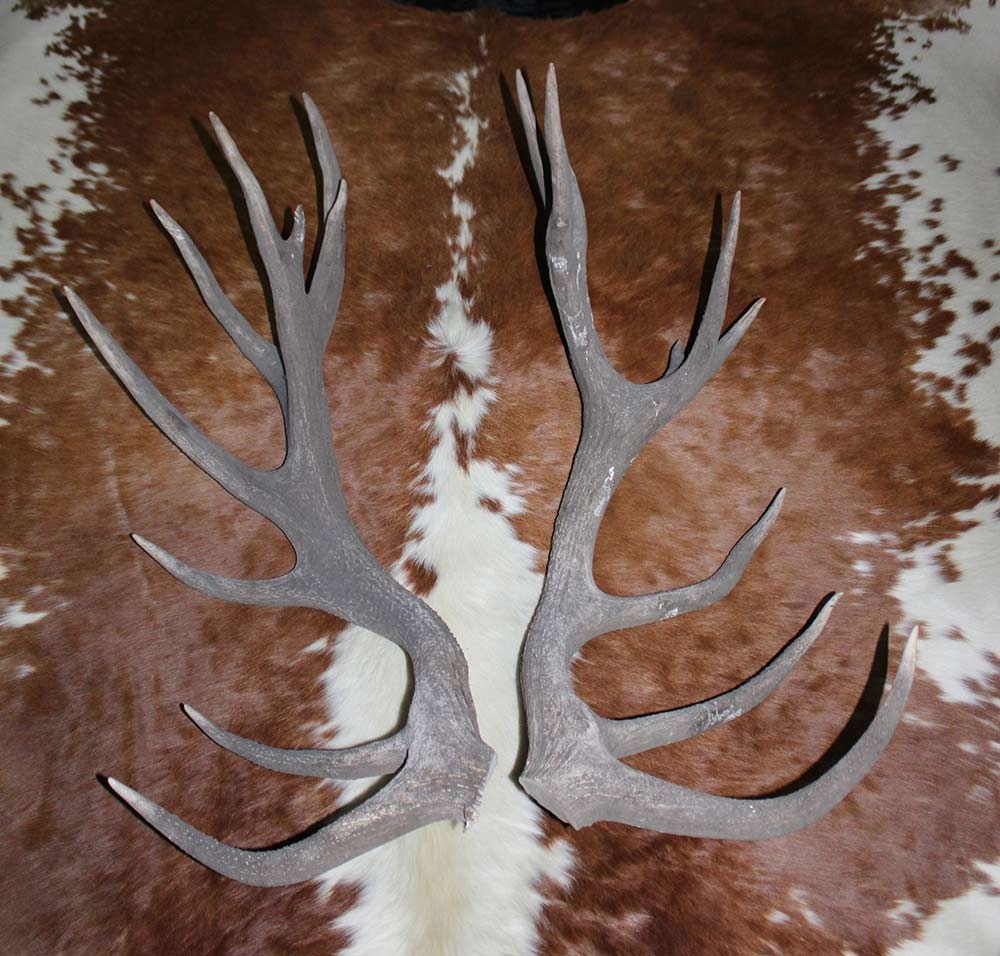 Groot paar EDELHERT GEWEI AFWERPSTANGEN - 18-ender - 6,5 kg - 97 cm. Ter decoratie of verdere verwerking. Onbehandeld. Met boenwas makkelijk donkerder/dieper te kleuren.