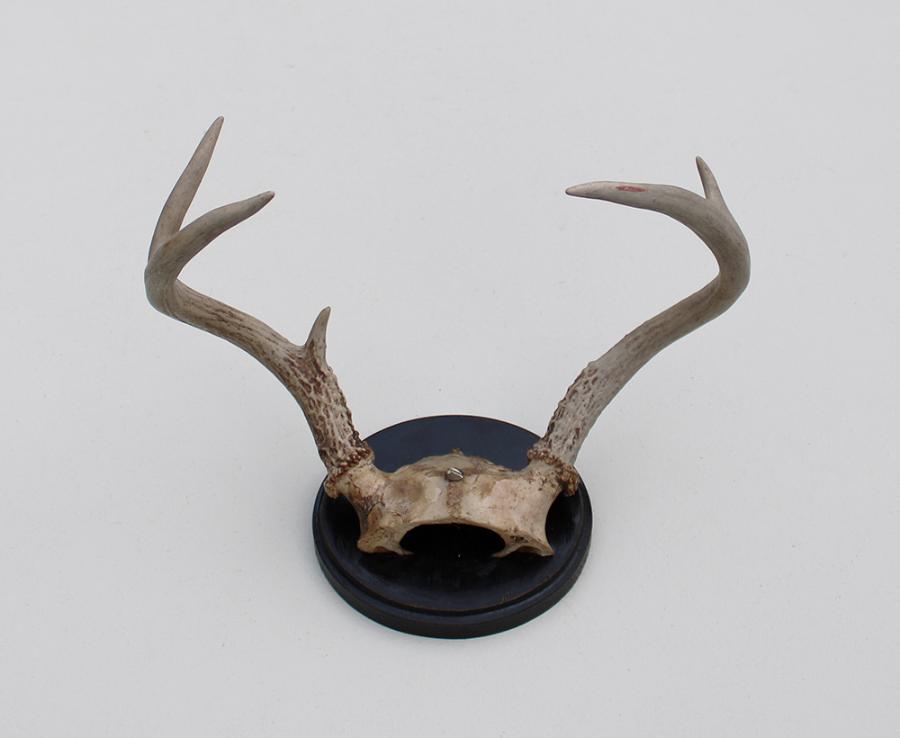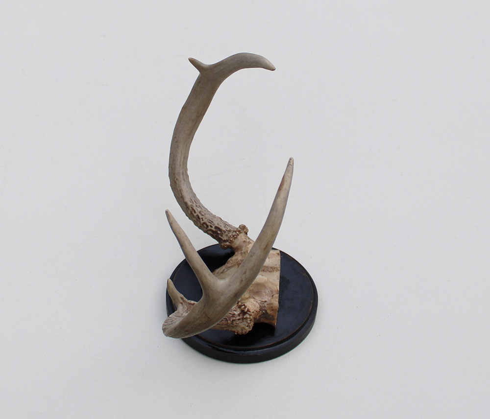 Klein GEWEI WITSTAART HERT op zwart schild. Diameter schild 14 cm. Het stuk is 29 cm breed, 14 cm hoog en 25 cm diep.