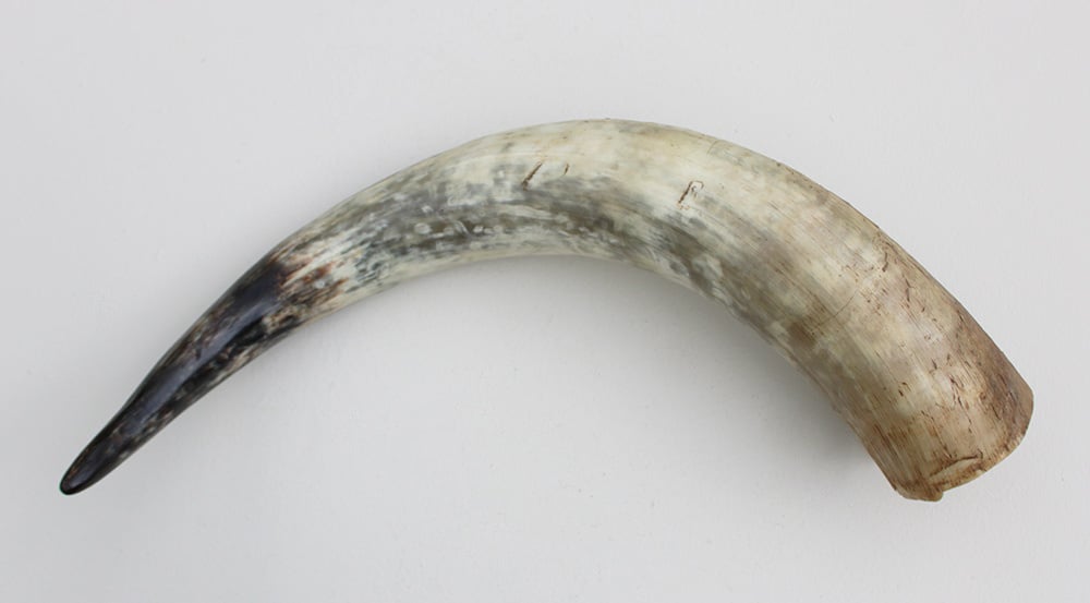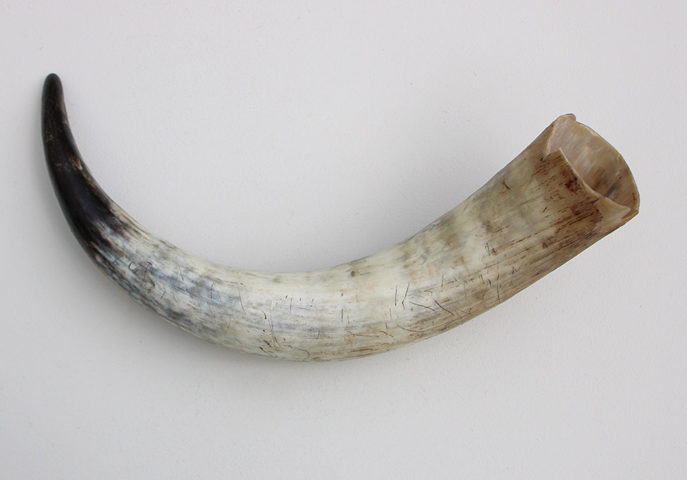 KOE HOORN - 80 cm. Omtrek basis 33 cm, diameter 10-11 cm. Ter decoratie of verdere verwerking.