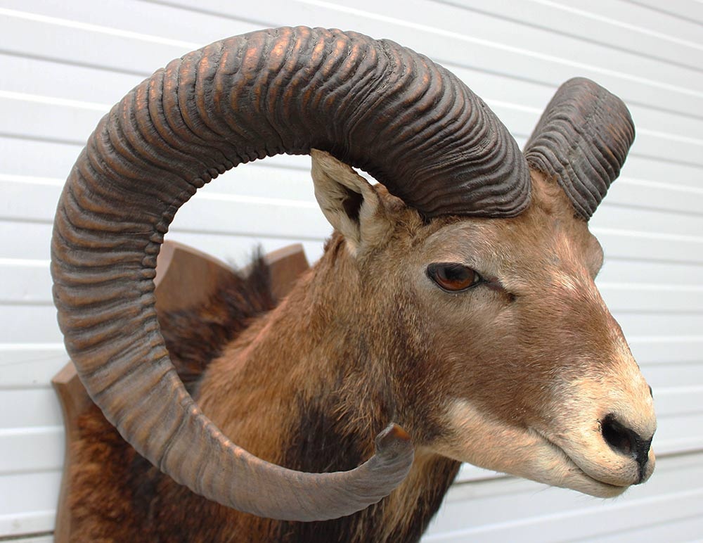Grote opgezette KOP MOEFLON RAM op houten schild