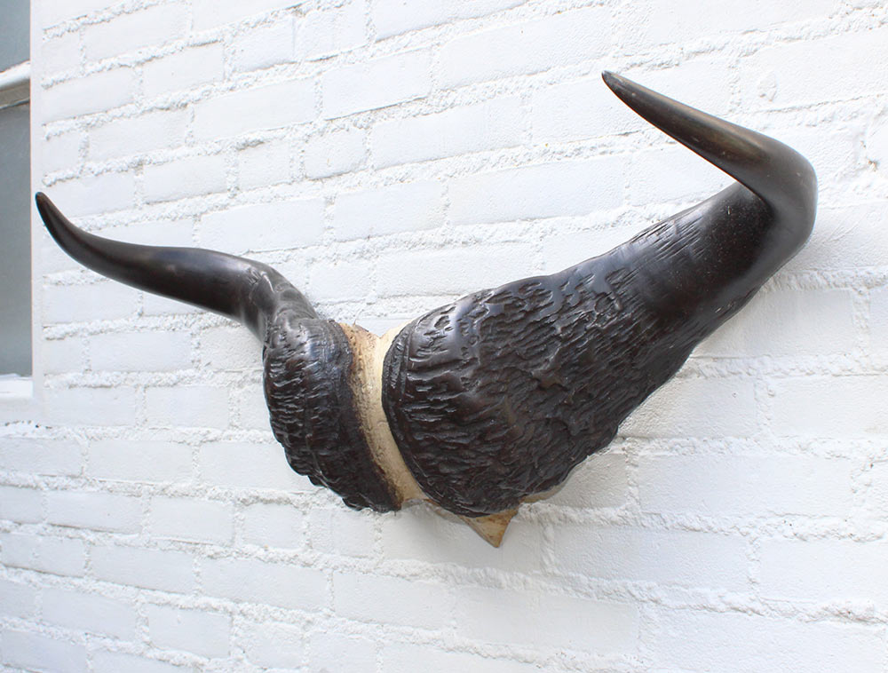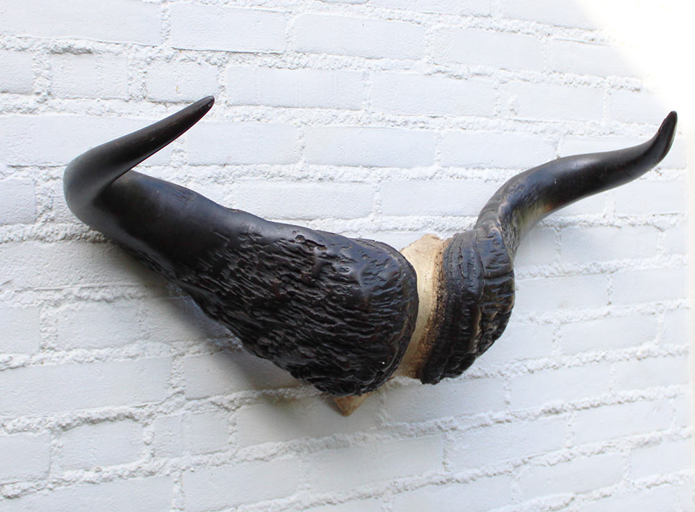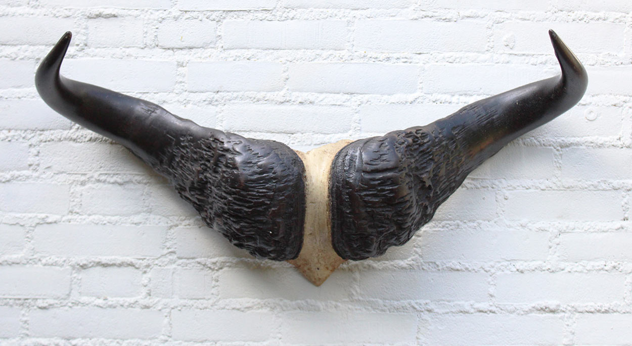 Oude schedel KAAPSE BUFFEL / KAFFER BUFFEL. Het stuk is 80 cm breed.
