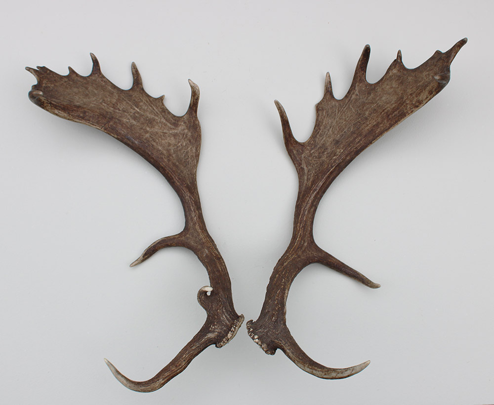 Paar DAMHERT GEWEI STANGEN. Afwerpstangen. Ter decoratie of verdere verwerking. Lengte 60-65 cm. De prijs is uiteraard voor de 2 geweistangen samen.