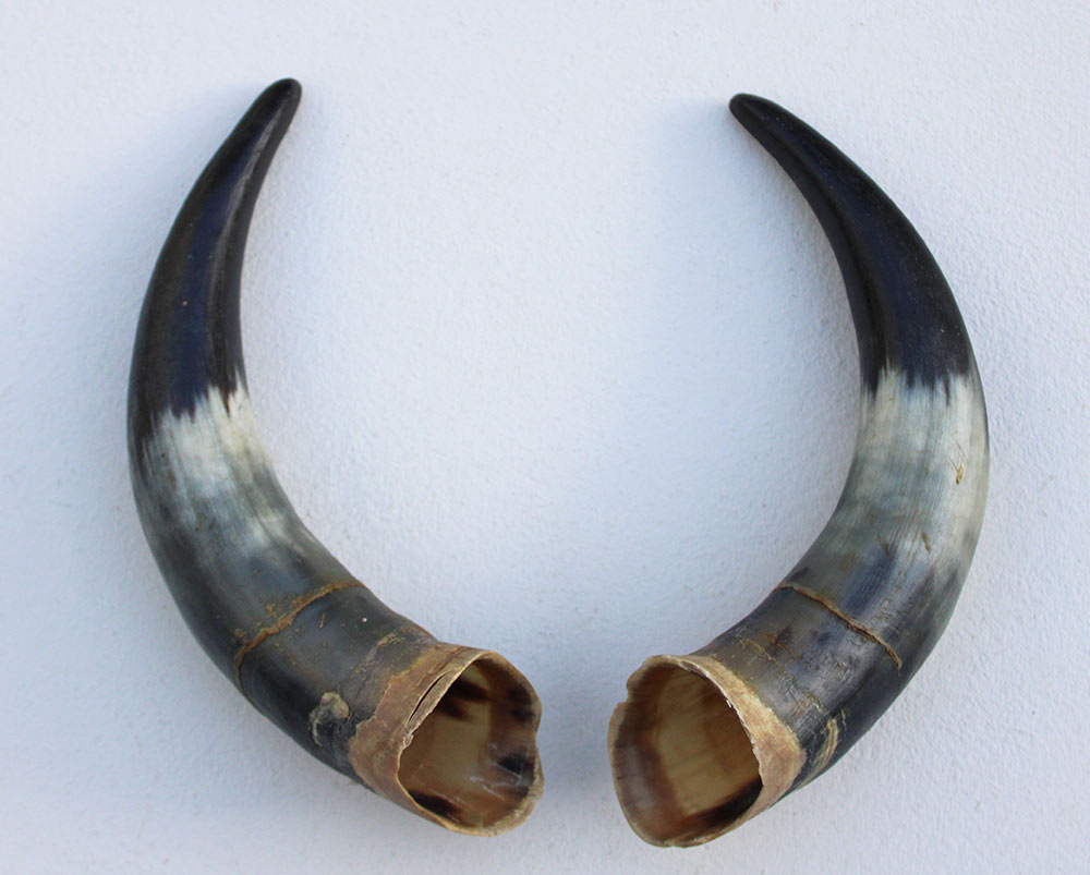 Paar KOE HOORNS - 27 cm. Ter decoratie of verdere verwerking. De prijs is uiteraard voor de 2 hoorns samen.