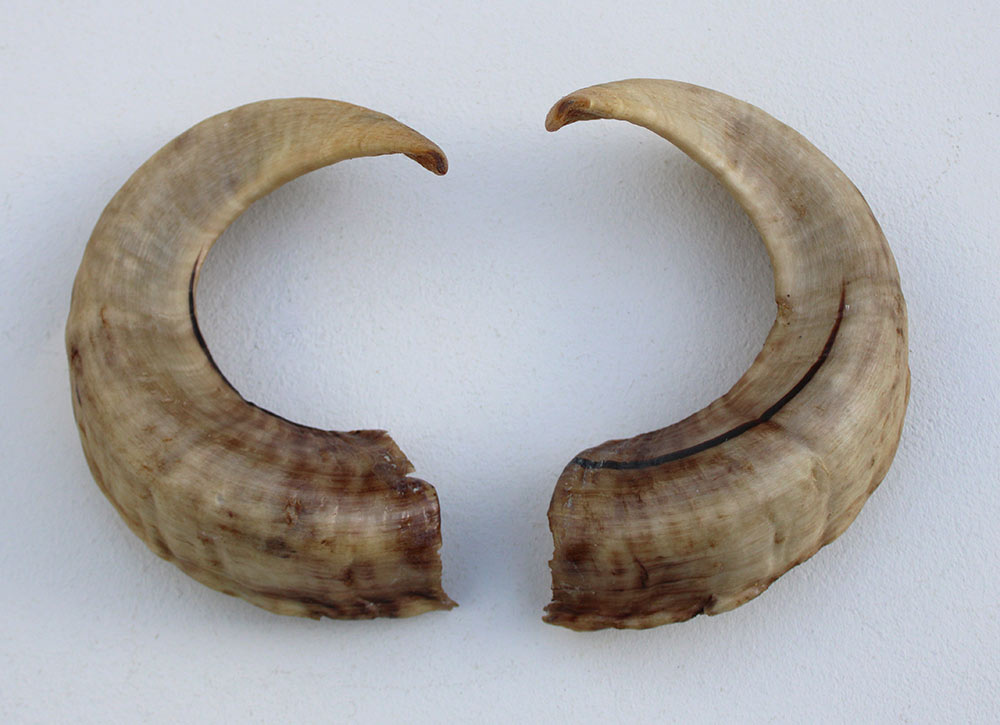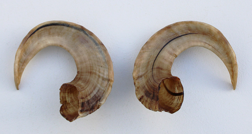 Paar RAMS-HOORNS - 38 cm. Ter decoratie of verdere verwerking. De prijs is uiteraard voor de 2 hoorns samen.
