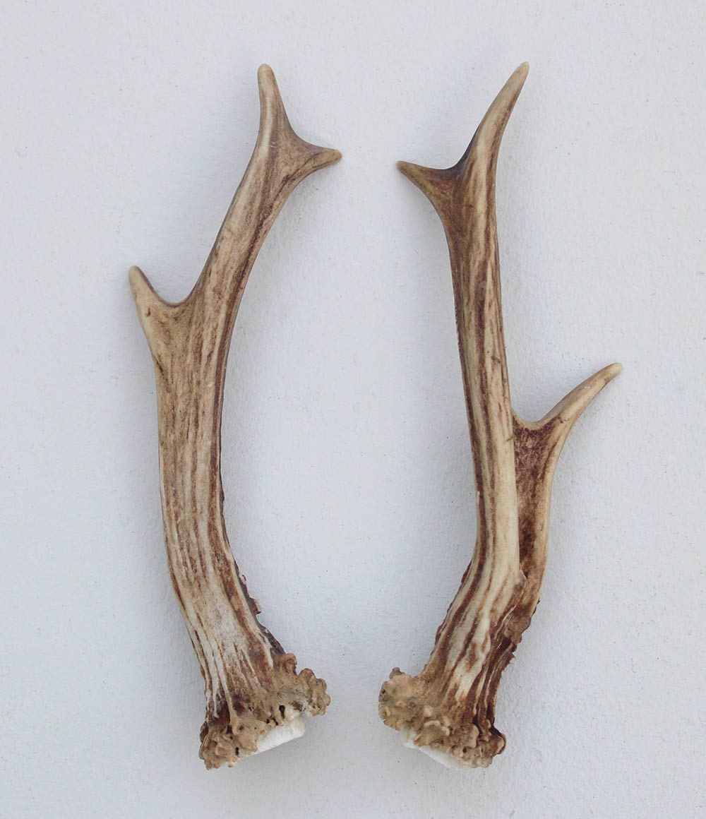 REE GEWEI PAAR 16 cm, ter decoratie of verdere verwerking. De prijs is uiteraard voor de 2 gewei stangetjes samen.